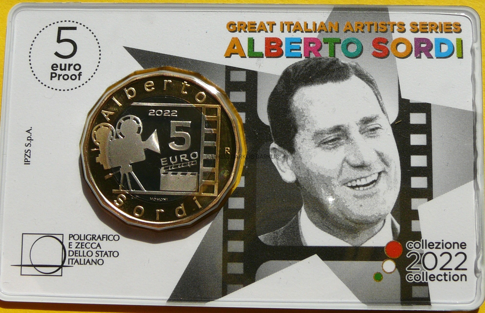 NA AUKCJI WYSTAWIANA JEST PRZEPIĘKNA ORYGINALNA RZADKA MONETA KOLEKCJONERSKA - 5 EURO - WŁOCHY 2022 - ALBERTO SORDI WIELCY WŁOSCY ARTYŚCI - STEMPEL LUSTRZANY - MENNICZA - RARYTAS - NAKŁAD TYLKO 10.000 SZTUK !! + CERTYFIKAT AUTENTYCZNOŚCI + ETUI + KARTON - NA INNYCH AUKCJACH WYSTAWIAM MONETY Z TEJ SERII - ZAPRASZAM DO OBEJRZENIA