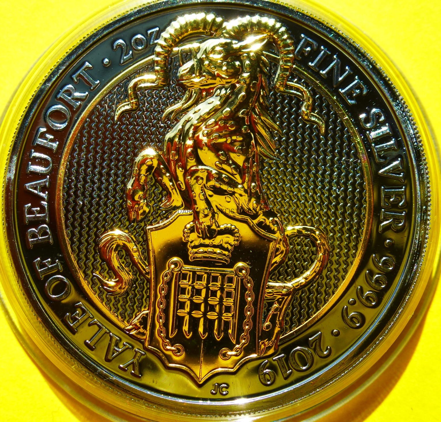 NA AUKCJI WYSTAWIONA JEST PRZEPIĘKNA ORYGINALNA SREBRNA MONETA KOLEKCJONERSKA PLATEROWANA 24 KARATOWYM ZŁOTEM I RUTHENEM - 5 FUNTÓW - WIELKA BRYTANIA 2019 - seria: BESTIE KRÓLOWEJ - YALE OF THE BEAUFORT / YALE z BEAUFORT - CZYSTE SREBRO/ZŁOTO PRÓBY 999 - 2 UNCJE - RUTHEN - BLACK ENIGMA - MENNICZA - RARYTAS - NAKŁAD TYLKO 2.000 SZTUK + CERTYFIKAT AUTENTYCZNOŚCI + ETUI - NA INNYCH AUKCJACH MONETY Z TEJ SERII - ZAPRASZAM DO OBEJRZENIA