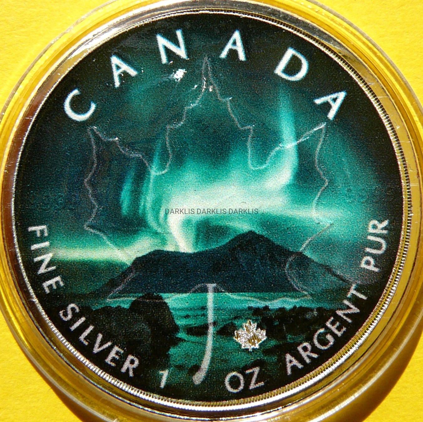 NA AUKCJI WYSTAWIANA JEST PRZEPIĘKNA ORYGINALNA SREBRNA MONETA KOLEKCJONERSKA - 5 DOLLARS - KANADA 2018 - LIŚĆ KLONU / MAPLE LEAF - ZIELONA ZORZA POLARNA - KOLOR - CZYSTE SREBRO PRÓBY 999 - UNCJA - RARYTAS - NA INNYCH AUKCJA WYSTAWIAM MONETY Z TEJ SERII - ZAPRASZAM DO OGLĄDANIA