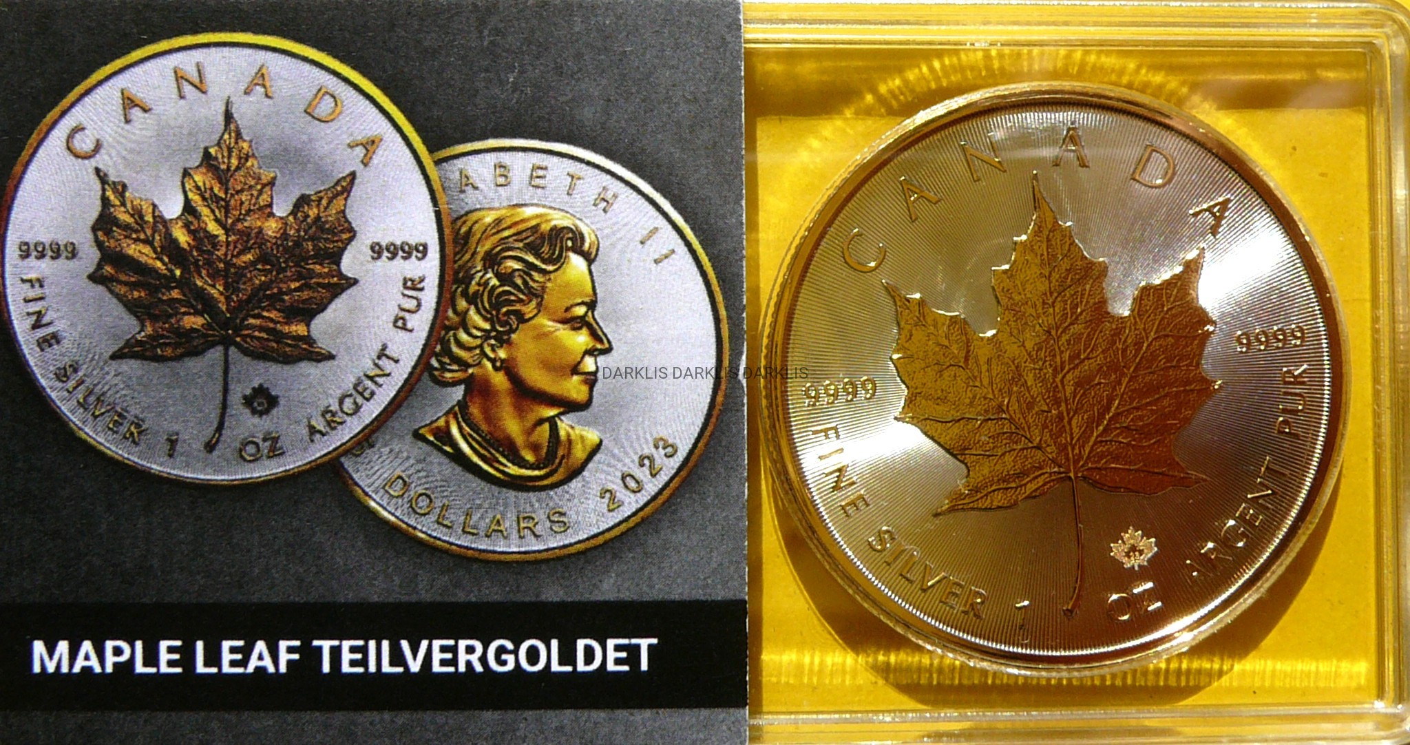 NA AUKCJI WYSTAWIANA JEST PRZEPIĘKNA ORYGINALNA SREBRNA MONETA KOLEKCJONERSKA - 5 DOLLARS - KANADA 2023 - LIŚĆ KLONU MAPLE LEAF - PLATEROWANA 24 KARATOWYM ZŁOTEM - CZYSTE SREBRO PRÓBY 999 - UNCJA - RARYTAS - RZADKA - NAKŁAD TYLKO 250 SZTUK !! + CERTYFIKAT AUTENTYCZNOŚCI - NA INNYCH AUKCJA WYSTAWIAM MONETY Z TEJ SERII - ZAPRASZAM DO OGLĄDANIA