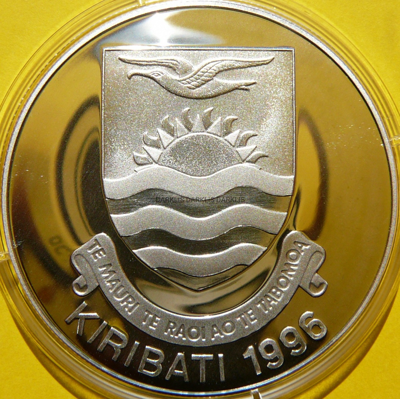 NA AUKCJI WYSTAWIANA JEST PRZEPIĘKNA ORYGINALNA i RZADKA SREBRNA MONETA KOLEKCJONERSKA - 5 DOLLARS - KIRIBATI 1996 - ŻAGLOWIEC / ODKRYCIE KIRIBATI - SREBRO PRÓBY 925 - UNCJA - MENNICZA - STEMPEL LUSTRZANY - RARYTAS - NA INNYCH AUKCJACH WYSTAWIAM MONETY Z TEJ SERII - ZAPRASZAM DO OGLĄDANIA