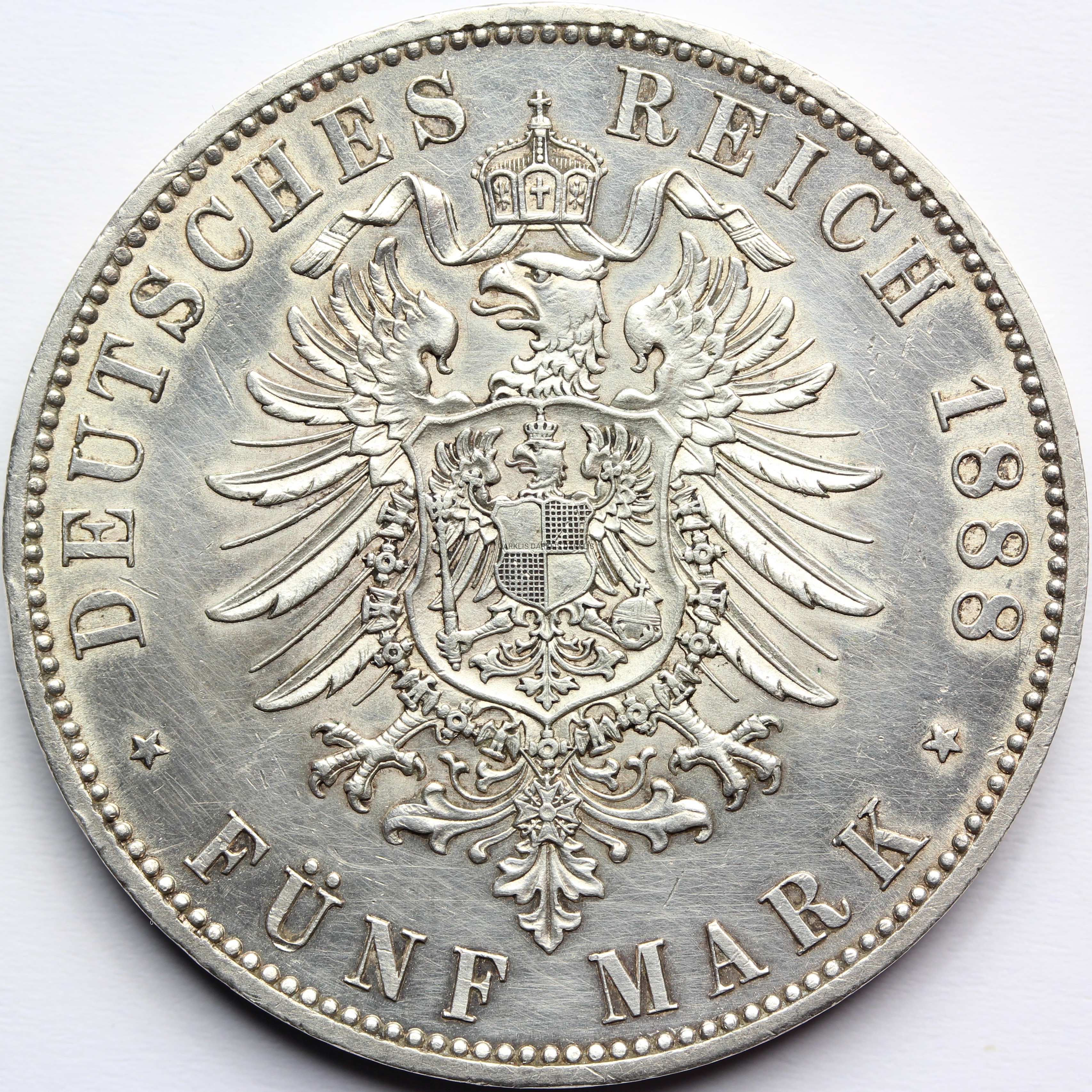 5 MAREK KAISERREICH PRUSY 1888 FRYDERYK Nr.4