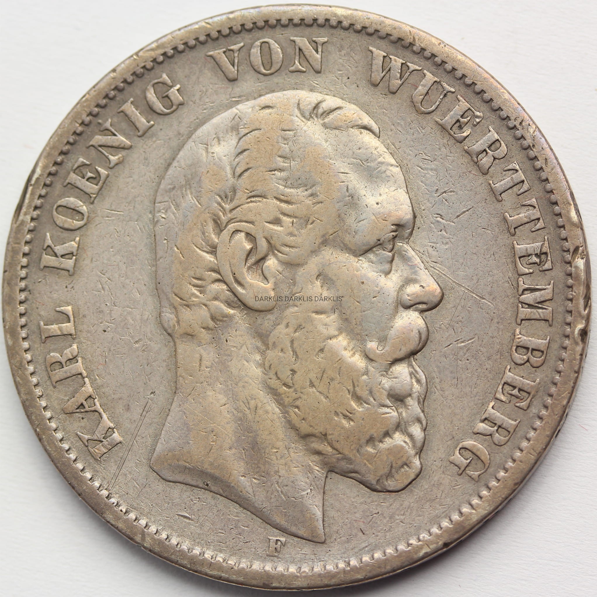 NA AUKCJI WYSTAWIANA JEST PRZEPIĘKNA STARA ORYGINALNA i RZADKA SREBRNA MONETA KOLEKCJONERSKA - 5 MAREK - KAISERREICH WIRTEMBERGIA 1876 -F- KAROL - RZADKA - ORYGINAŁ - RARYTAS - NA INNYCH AUKCJACH WYSTAWIAM DUŻO STARYCH NIEMIECKICH MONET TALARÓW i MAREK - ZAPRASZAM DO OBEJRZENIA - 7/05/07/24