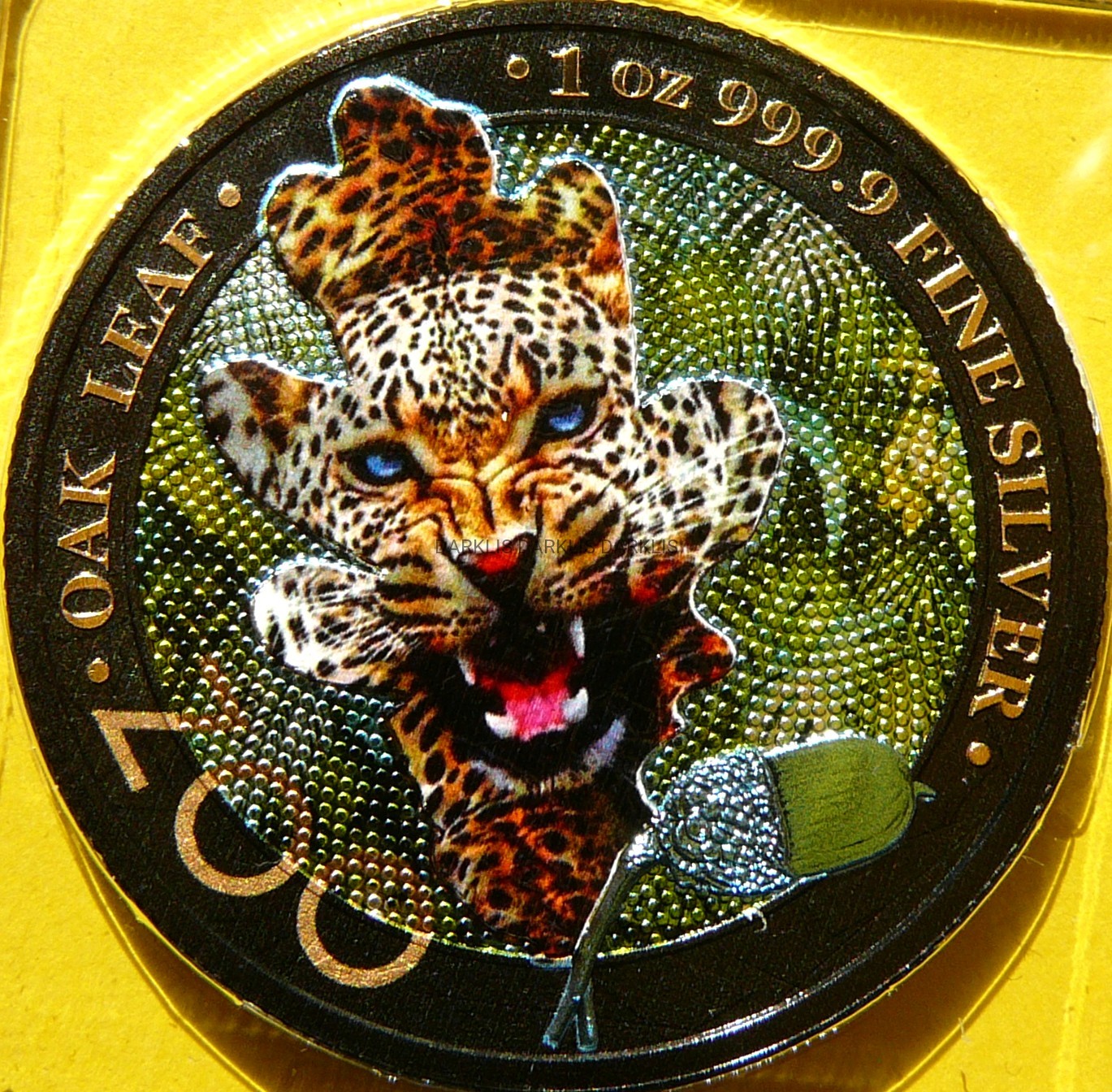 NA AUKCJI WYSTAWIANA JEST PRZEPIĘKNA ORYGINALNA SREBRNA MONETA KOLEKCJONERSKA - 5 MARK - GERMANIA 2019 - LIŚĆ DĘBU ZOO PANTERA - KOLOR - CZYSTE SREBRO PRÓBY 999 - UNCJA - RARYTAS - RZADKA + CERTYFIKAT AUTENTYCZNOŚCI - NA INNYCH AUKCJA WYSTAWIAM MONETY Z TEJ SERII - ZAPRASZAM DO OGLĄDANIA