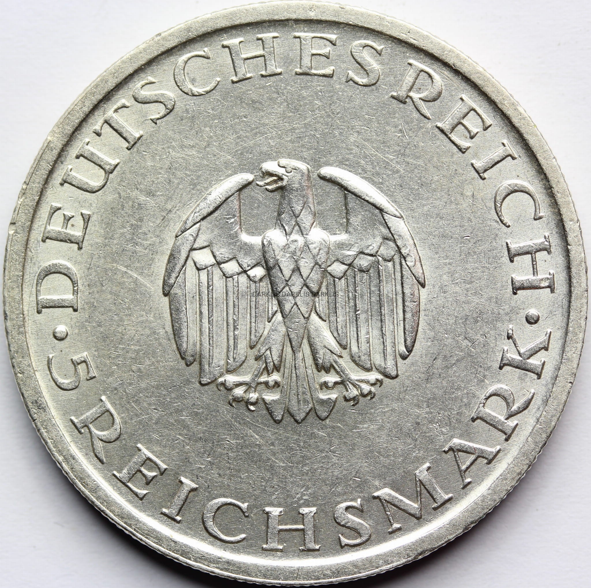 5 REICHSMARK WEIMAR 1929 A GOTTHOLD LESSING RZADKA Nr.2