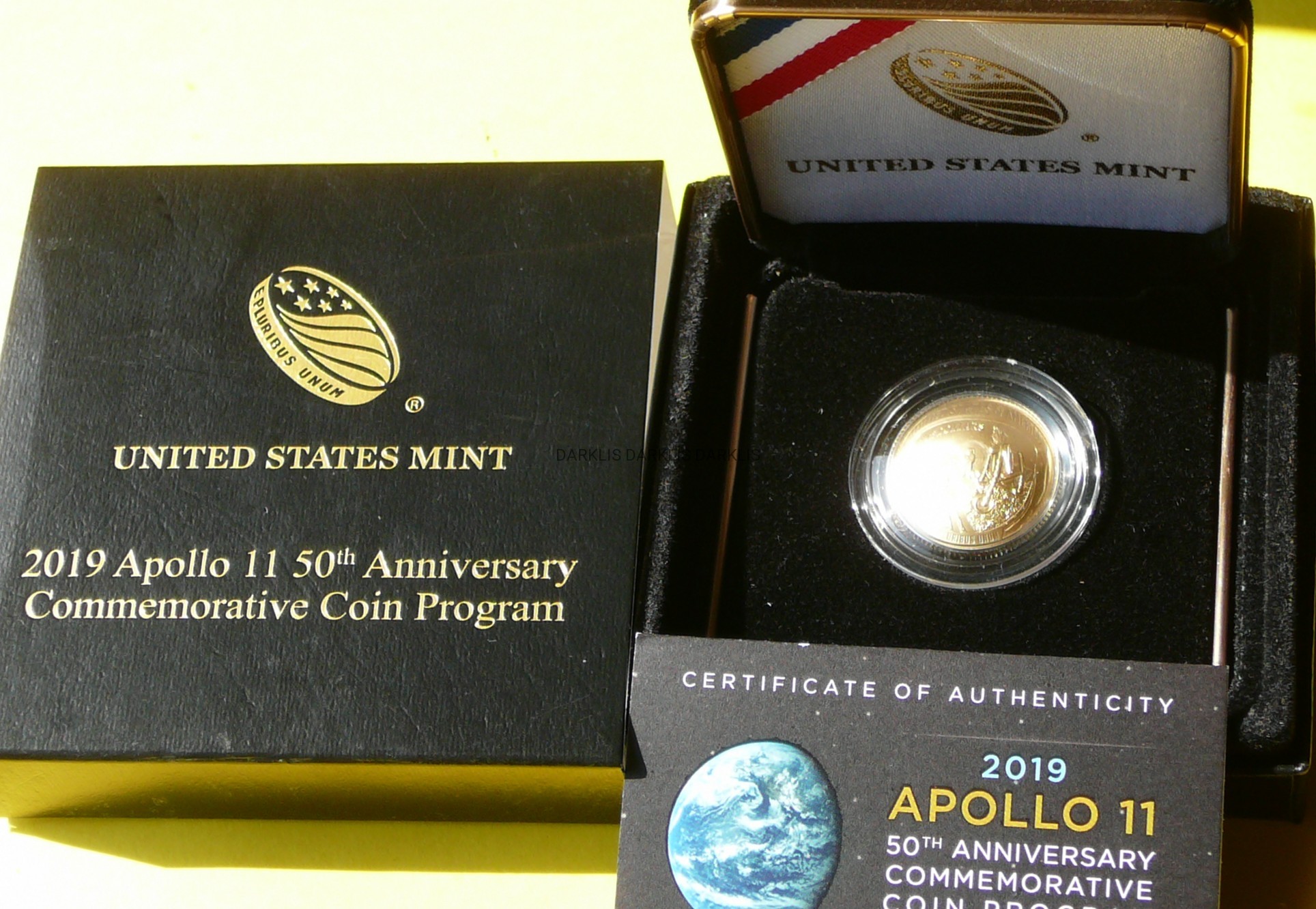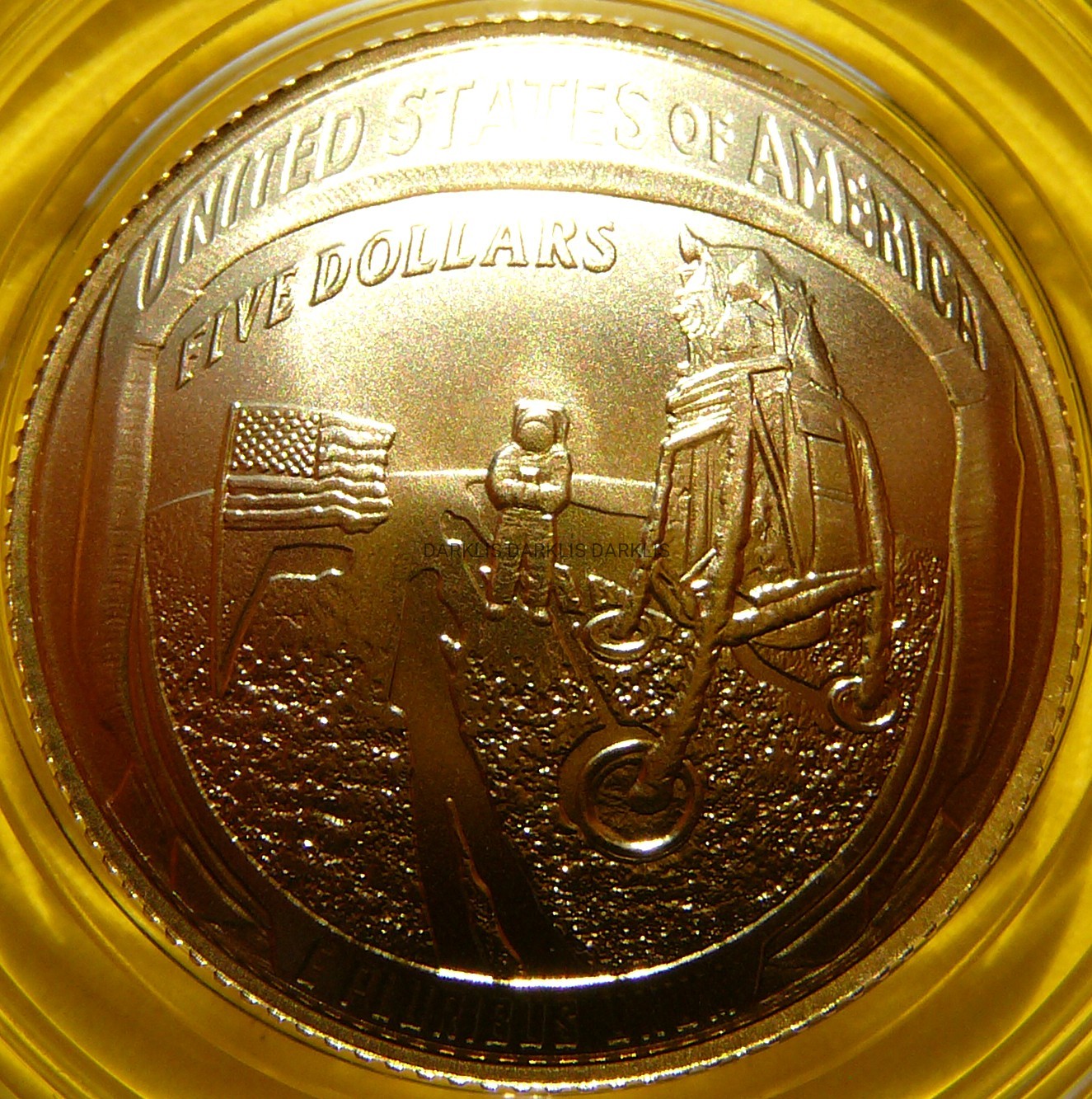 NA AUKCJI WYSTAWIANA JEST PRZEPIĘKNA ORYGINALNA i BARDZO RZADKA ZŁOTA MONETA KOLEKCJONERSKA - 5 DOLLARS - USA 2019 - 50 ROCZNICA LĄDOWANIA NA KSIĘŻYCU MISJA APOLLO 11 - ZŁOTO PRÓBY 900 - MONETA WYPUKŁA - STEMPEL MATT - MENNICZA - RARYTAS - RZADKA + CERTYFIKAT AUTENTYCZNOŚCI + ETUI + KARTON - NA INNYCH AUKCJACH WYSTAWIAM MONETY Z TEJ SERII - ZAPRASZAM DO OGLĄDANIA