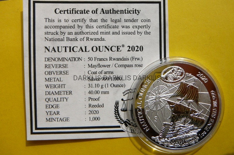 NA AUKCJI WYSTAWIANA JEST PRZEPIĘKNA SREBRNA i BARDZO RZADKA MONETA KOLEKCJONERSKA - 50 MIRONGO - RWANDA 2020 - ŻAGLOWIEC MAYFLOWER - SREBRO 999 - UNCJA - PROOF LIMITOWANA EDYCJA NAKŁAD TYLKO 1TYS. SZTUK POLECAM - MENNICZA W ORYGINALNEJ FOLII MENNICZEJ - NA INNYCH AUKCJACH DUŻO SREBRNYCH MONET Z TEJ SERII ZŁOCONE i W KOLORZE