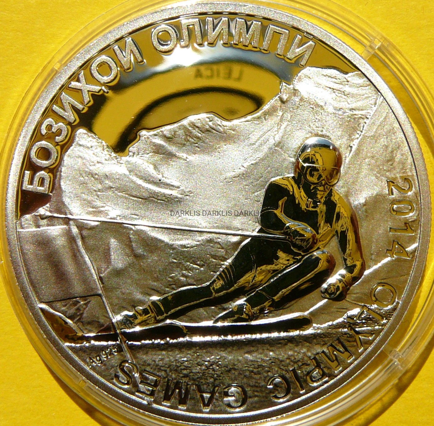 NA AUKCJI WYSTAWIONA JEST PRZEPIĘKNA ORYGINALNA i RZADKA SREBRNA MONETA KOLEKCJONERSKA - 50 SOMONI - TADŻYKISTAN 2014 - NARCIARSTWO ALPEJSKIE / OLIMPIADA SOCZI 2014 - KOLOR - SREBRO PRÓBY 925 - UNCJA - STEMPEL LUSTRZANY - RARYTAS - RZADKA - NA INNYCH AUKCJACH WYSTAWIAM MONETY Z TEJ SERII - ZAPRASZAM DO OGLĄDANIA