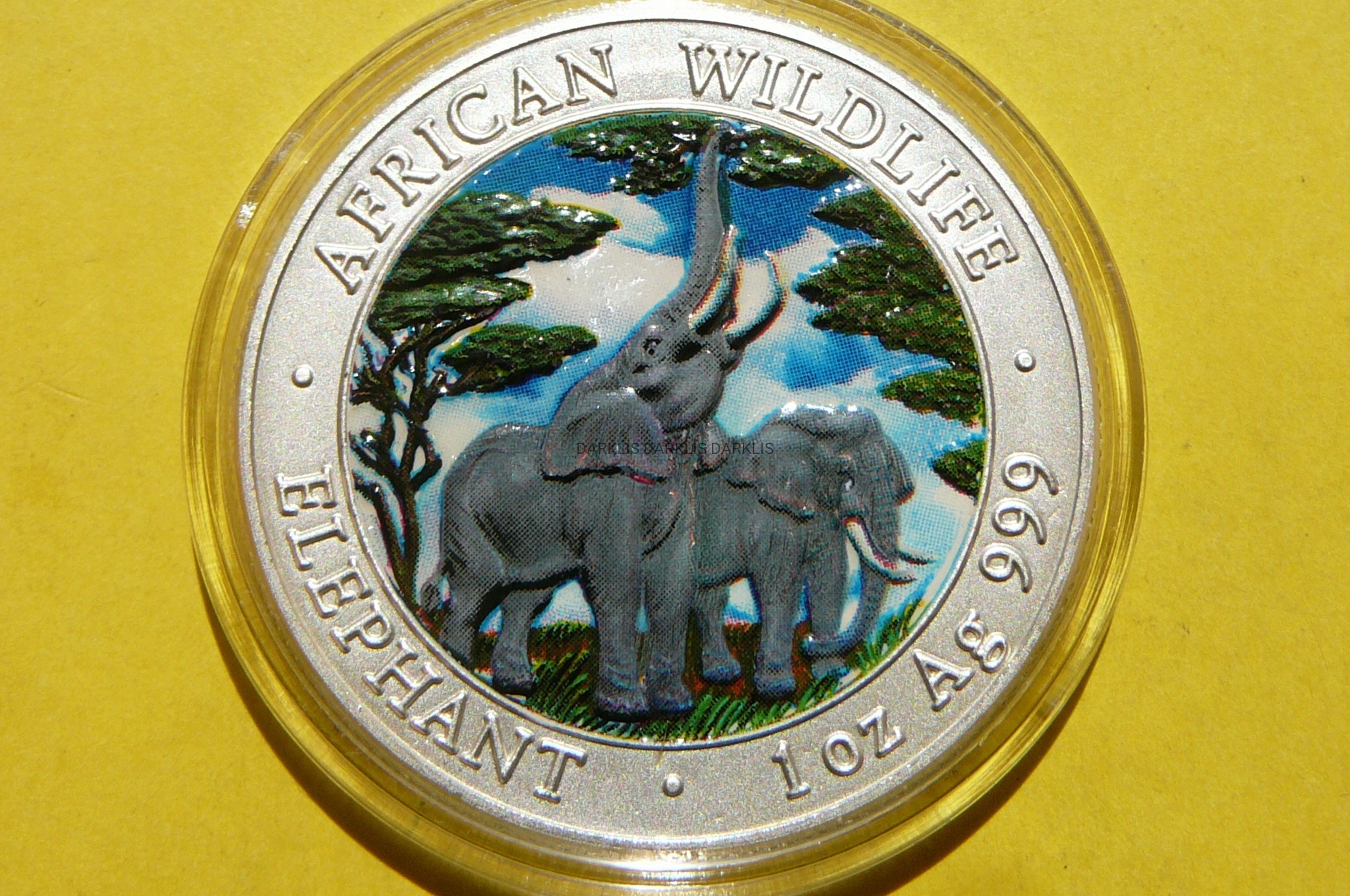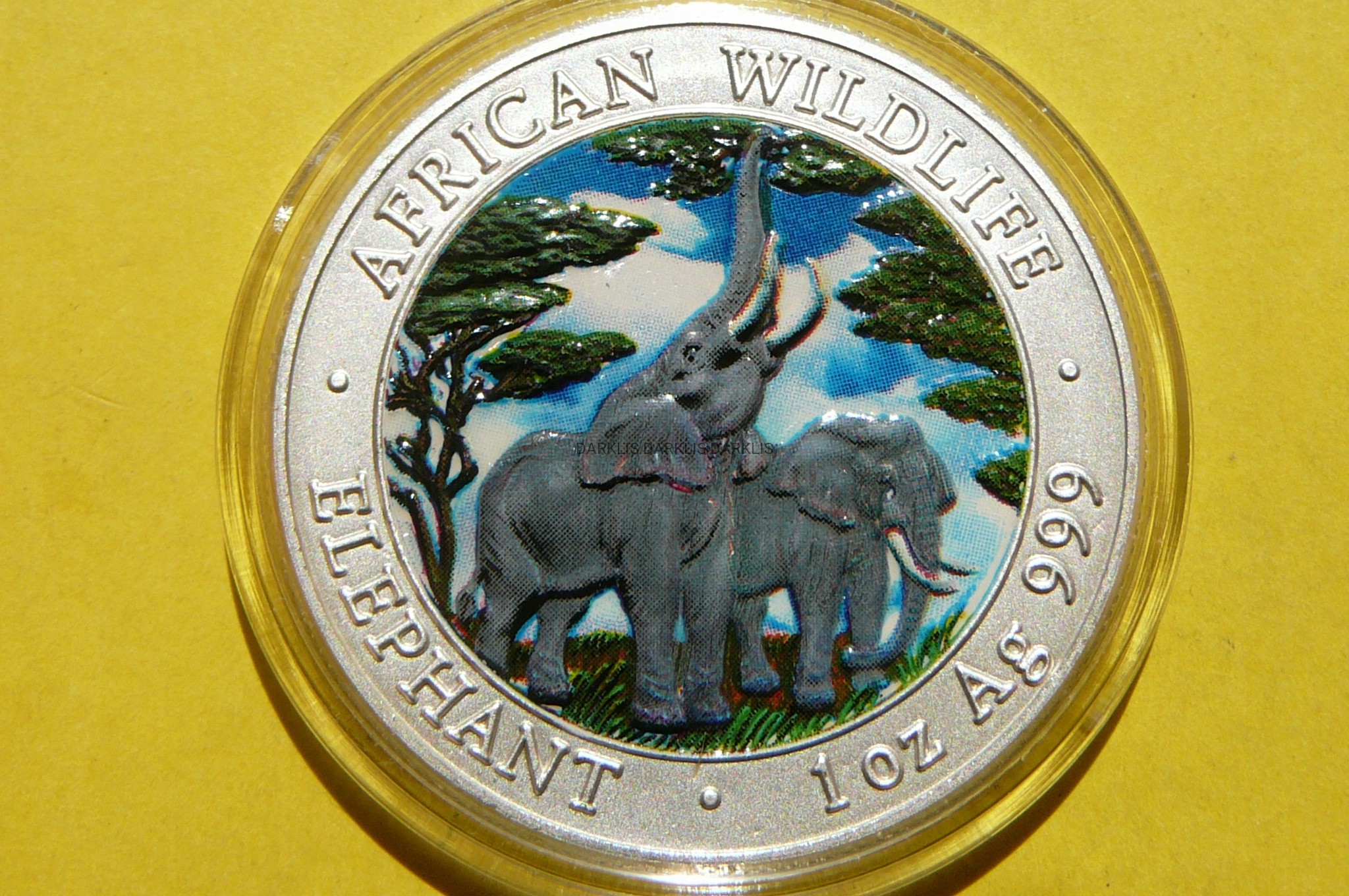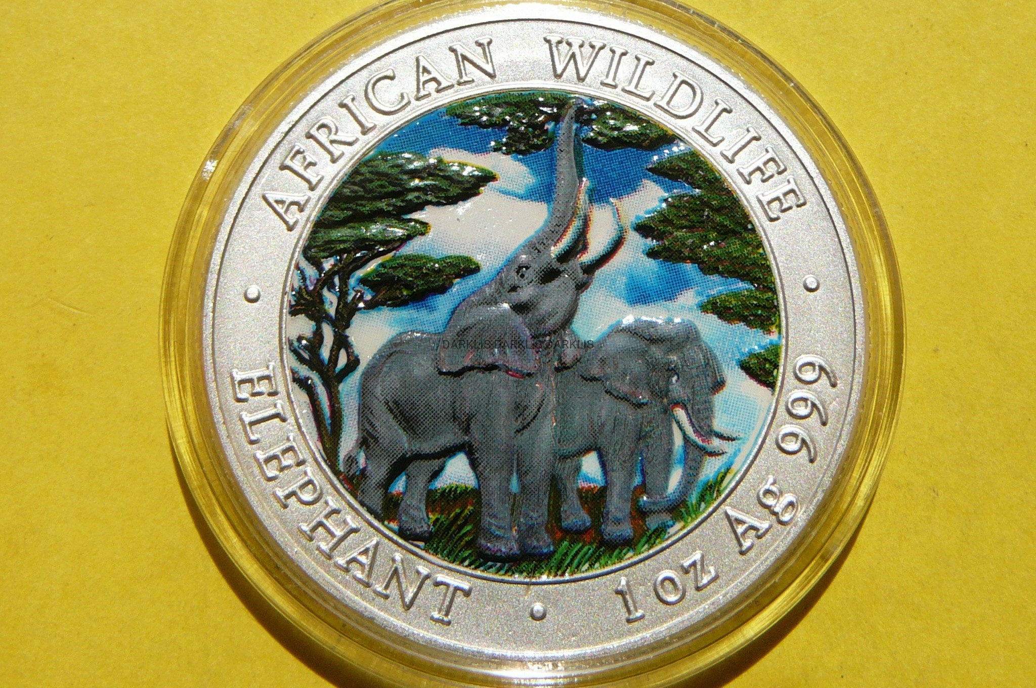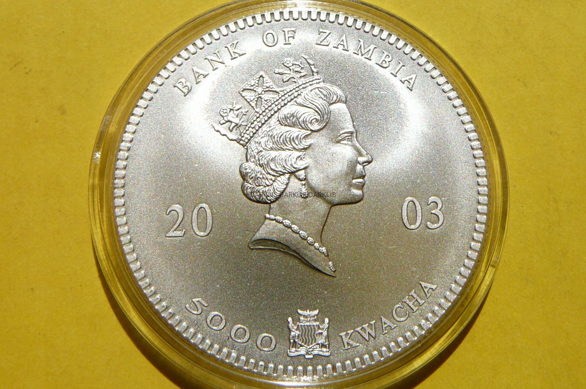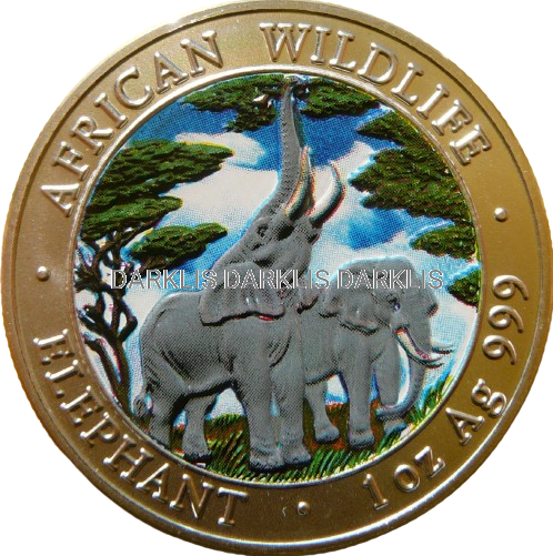 5000 KWACHA ZAMBIA 2003 SŁOŃ SREBRO 999 Oz KOLOR