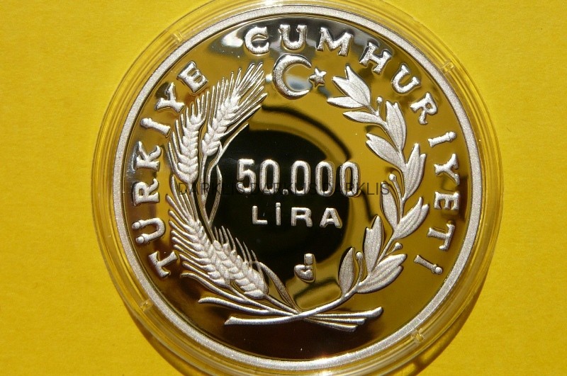 50000 LIR TURCJA 1994 - IBIS GRZYWIASTY -Ag 925 Oz