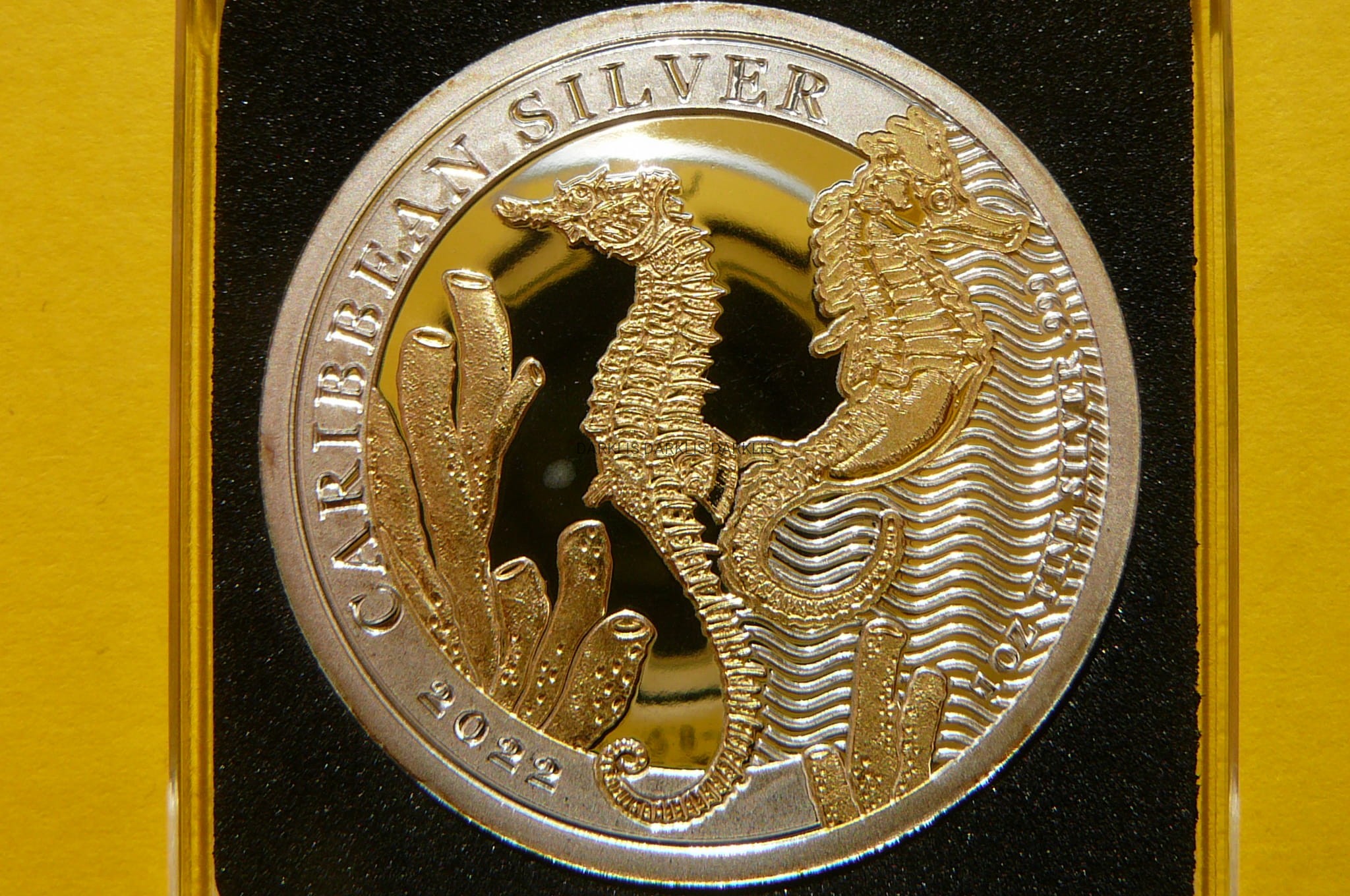 NA AUKCJI WYSTAWIONA JEST PRZEPIĘKNA ORYGINALNA i RZADKA SREBRNA MONETA KOLEKCJONERSKA PLATEROWANA 24 KARATOWYM ZŁOTEM - DOLLAR - BARBADOS 2022 - KONIK MORSKI - CZYSTE SREBRO/ZŁOTO PRÓBY 999 - UNCJA - STEMPEL MATT - MENNICZA - POLECAM - RARYTAS - NA INNYCH AUKCJACH WYSTAWIAM MONETY Z TEJ SERII - ZAPRASZAM DO OGLĄDANIA