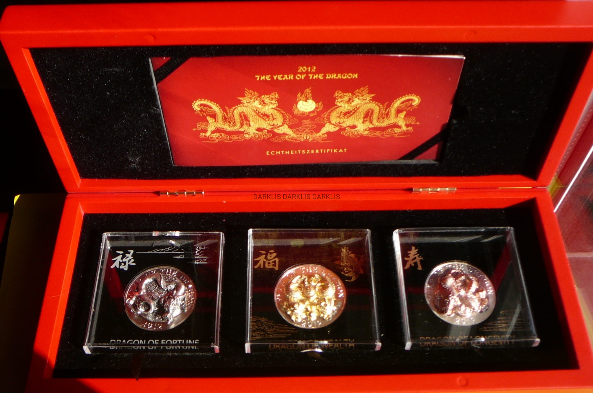 NA AUKCJI WYSTAWIANY JEST PRZEPIĘKNY ZESTAW ORYGINALNY SREBRNYCH i BARDZO RZADKICH MONET KOLEKCJONERSKICH - 3 x 500 FRANKÓW - RWANDA 2012 - ROK SMOKA - 3 RODZAJE SMOKÓW (FORTUNA / BOGACTWO / DŁUGOWIECZNOŚĆ) - CZYSTE SREBRO/ZŁOTO PRÓBY 999 i RÓŻOWE ZŁOTO PRÓBY 750 - 3D - 3 UNCJE - MATT - RARYTAS - BARDZO RZADKIE NAKŁAD TYLKO 1.000 SZTUK!! + ORYGINALNE ETUI + CERTYFIKAT AUTENTYCZNOŚCI + KARTON - NA INNYCH AUKCJACH WYSTAWIAM ZESTAWY Z TEJ SERII - ZAPRASZAM DO OGLĄDANIA
