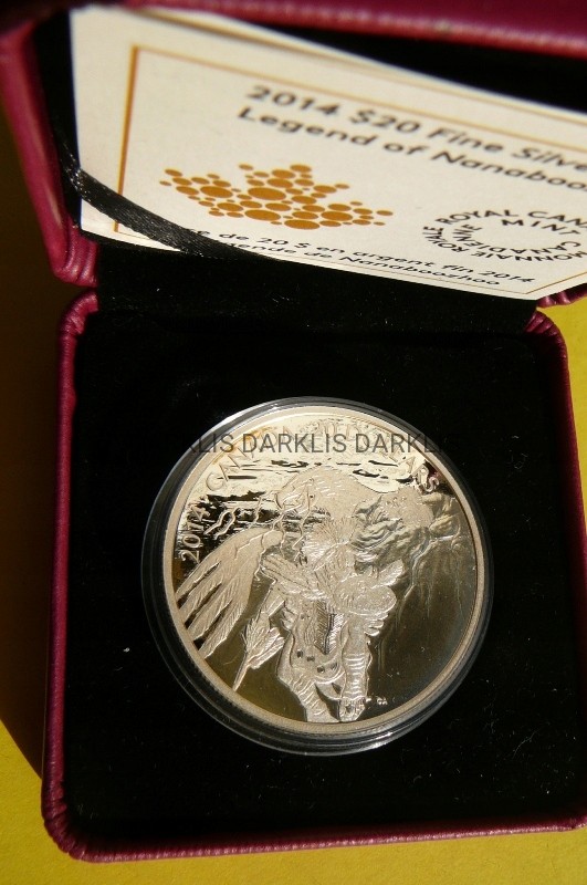 NA AUKCJI WYSTAWIONA JEST PRZEPIĘKNA ORYGINALNA SREBRNA MONETA KOLEKCJONERSKA - 20 DOLLARS - KANADA 2014 - - INDIANIN LEGENDY NANABOOZHOO - SREBRO 999 - UNCJA - PROOF - RARYTAS + KARTON + ETUI + CERTYFIKAT AUTENTYCZNOŚCI - RARYTAS NAKŁAD TYLKO 8500 SZTUK POLECAM - WYDANE PRZEZ KANADYJSKĄ MENNICĘ KRÓLEWSKĄ - NA INNYCH AUKCJACH MONETY Z TEJ SERII