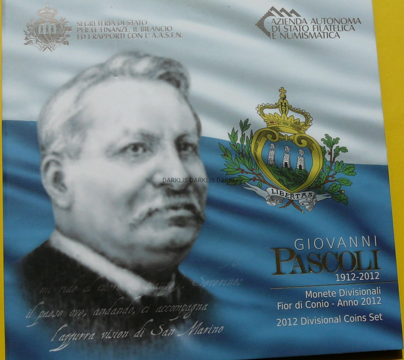 NA AUKCJI JEST WYSTAWIANY PRZEPIĘKNY ORYGINALNY ZESTAW MONET OKOLICZNOŚCIOWYCH EURO + 5 EURO - KMS EURO + 5 EURO SREBRNE PRÓBY 925 - SAN MARINO 2012 - GIOVANNI PASCOLI - MENNICZA - RZADKA - RARYTAS + ETUI + CERTYFIKAT AUTENTYCZNOŚCI - OFICJALNE WYDANIE NARODOWEGO BANKU SAN MARINO - MAŁY NAKŁAD - NA INNYCH AUKCJACH WYSTAWIAM ZESTAWY Z TEJ SERII - ZAPRASZAM DO OGLĄDANIA