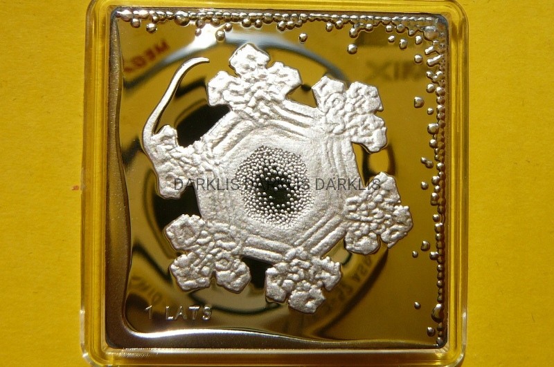 NA AUKCJI WYSTAWIONA JEST PRZEPIĘKNA SREBRNA MONETA KOLEKCJONERSKA - LATS - ŁOTWA 2009 - WODNA MONETA - PLATEK ŚNIEGU - SREBRO 925 - PROOF - MENNICZA - RARYTAS + CERTYFIKAT AUTENTYCZNOŚCI + ETUI + NAKŁAD TYLKO 7000 SZTUK - NA INNYCH AUKCJACH MONETY Z TEJ SERII