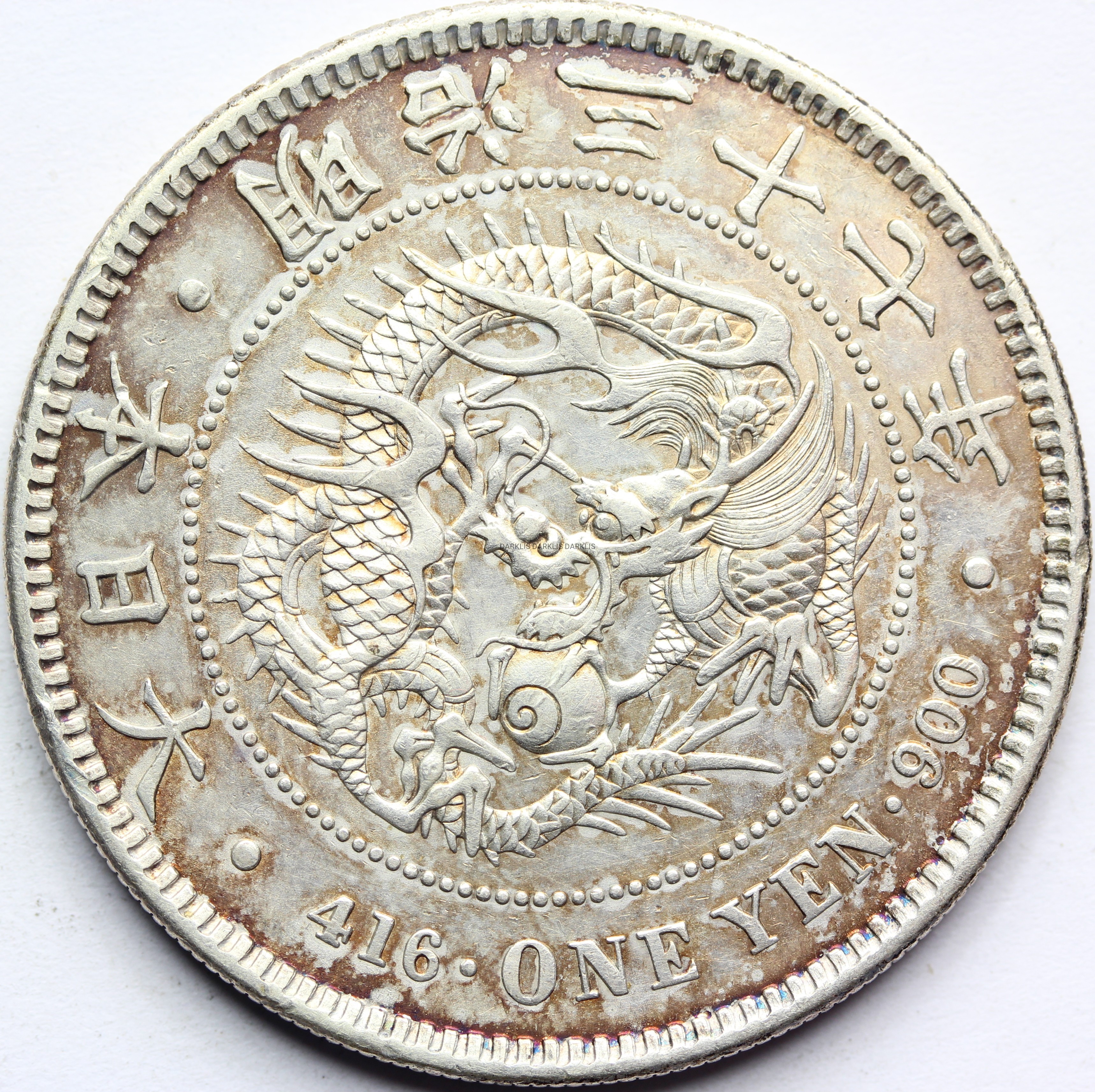 NA AUKCJI WYSTAWIANA JEST PRZEPIĘKNA ORYGINALNA I RZADKA SREBRNA MONETA - YEN - JAPONIA 1904 - SMOK - PANUJĄCY MUTSUHITO - SREBRO - SUPER STAN - POLECAM - RARYTAS - NA INNYCH AUKCJACH WYSTAWIAM MONETY Z TEJ SERII - ZAPRASZAM DO OGLĄDANIA 2/15/07/25